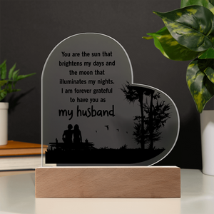 Heart Acrylic Plaque.(You are the sun that brightens my days and the moon..)