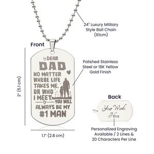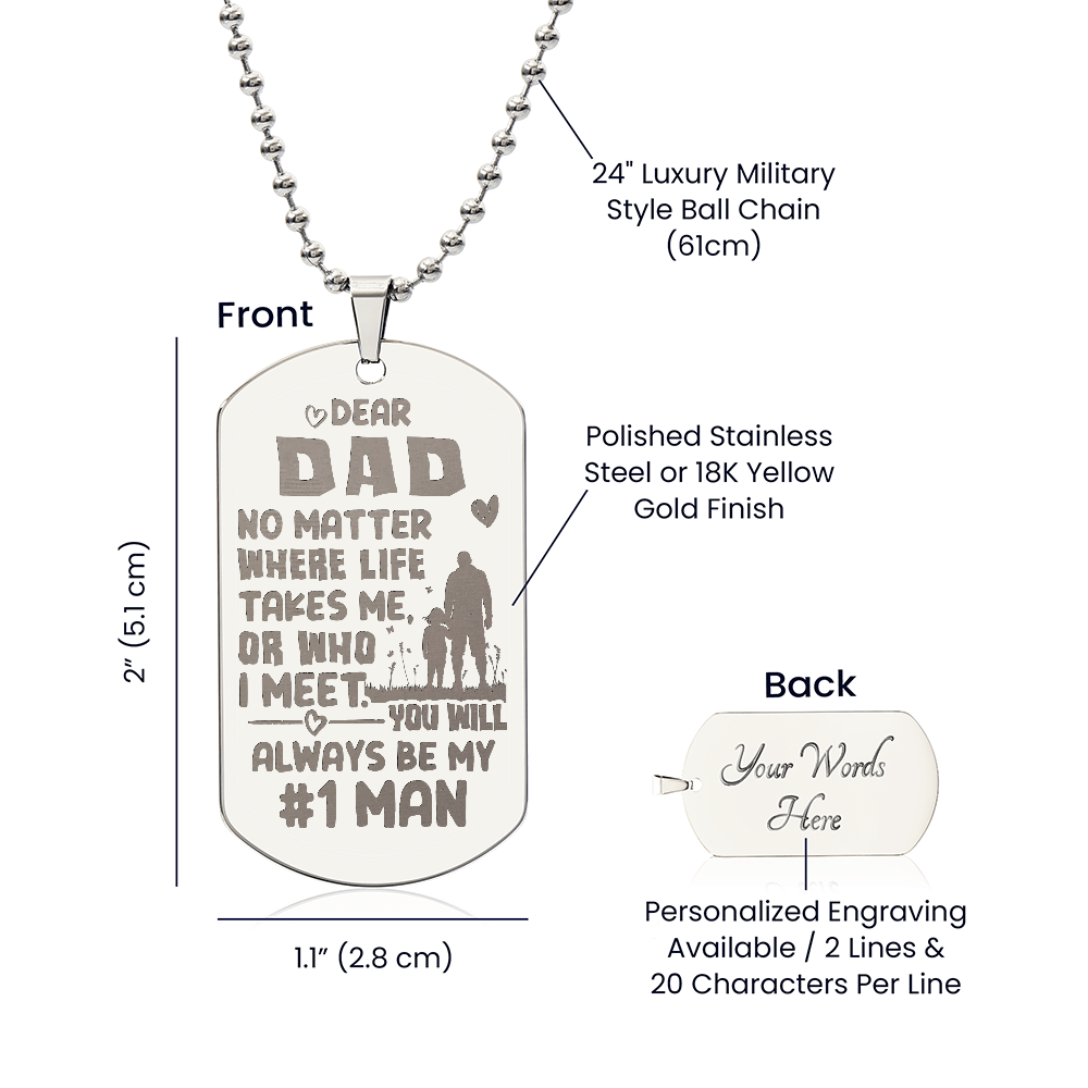 To my Dad - No matter where life.(Engraved Dog Tag Necklace)