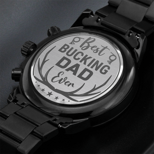 A personalized gift that can withstand constant use, this Engraved Design Black Chronograph Watch is the perfect gift for all the special men in your life. A thoughtful groomsmen gift, an anniversary memento, or a long-lasting keepsake for Father’s Day - it's a versatile piece sure to warm hearts and create smiles. Featuring a three-dial face, calendar function, and luxury pointer in a water-resistant and scratch-proof vessel.