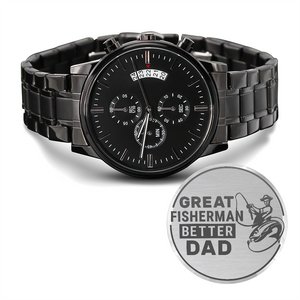 A personalized gift that can withstand constant use, this Engraved Design Black Chronograph Watch is the perfect gift for all the special men in your life. A thoughtful groomsmen gift, an anniversary memento, or a long-lasting keepsake for Father’s Day - it's a versatile piece sure to warm hearts and create smiles. Featuring a three-dial face, calendar function, and luxury pointer in a water-resistant and scratch-proof vessel.