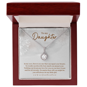 Nothing can lessen my love for you, as you have it now and for all eternity. No matter how old you might be. you will always be my little girl.