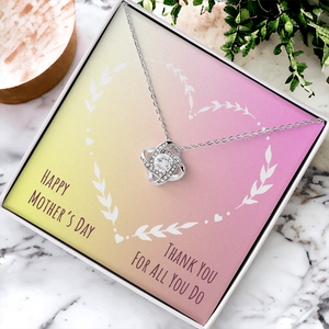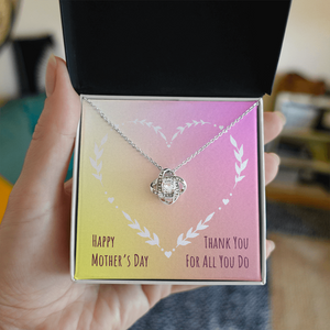 Imagine her reaction receiving this beautiful Love Knot Necklace. Representing an unbreakable bond between two souls, this piece features a beautiful pendant embellished with premium cubic zirconia crystals. Surprise your loved one with this gorgeous gift today!