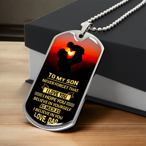 TO MY SON - I HOPE YOU BELIEVE IN YOURSELF.(Luxury Graphic Dog Tag Necklace)